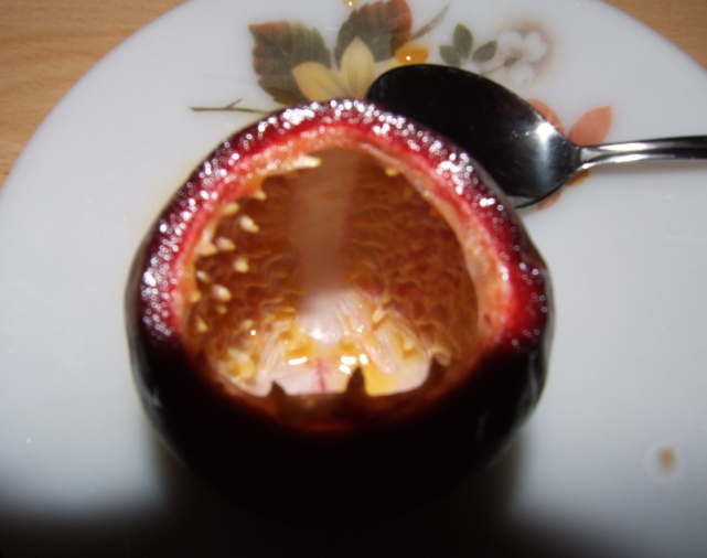Now, I’ve never had one before, it was odd once I was into it, no effort in eating, its not the prettiest though, like eating snot and pips but its tasty, very acidic though.